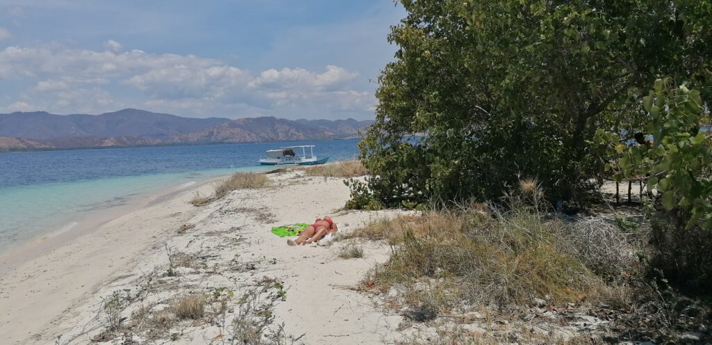 Pusdienas laikā uz kādu stundiņu laiskošanās uz salas ar burvīgu pludmali un koraļliem visapkārt salai. Bez mums te piestāj vēl pāris laivas. Ir pilnīgs miers un labsajūta.